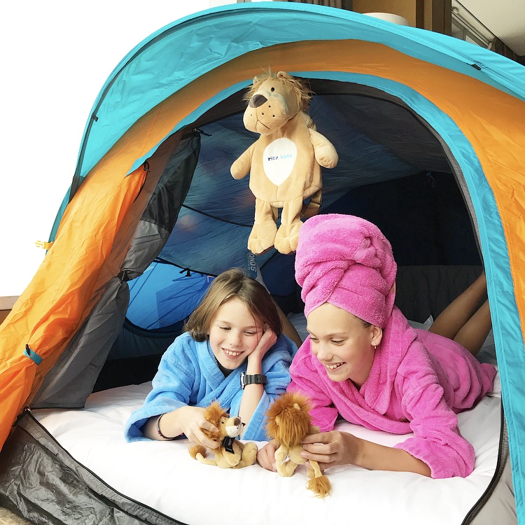 The room was set up perfectly for our family of 4 – complete with a Ritz Kids safari tent (the tent was where the sofa usually would be – in the window, overlooking the Harbour, but the room had been altered for 2 lucky little people!)